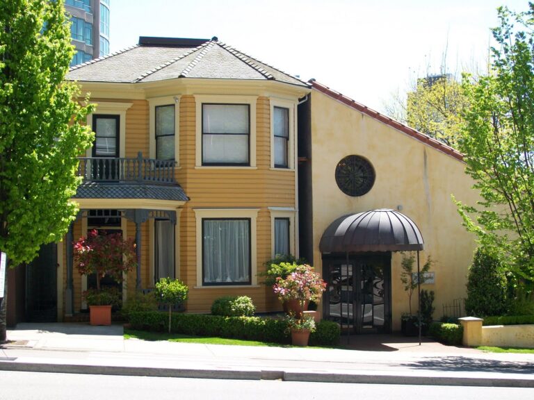 Leslie House, the little yellow house located adjacent to The Pacific, also offered some inspiration for the artistic vision. Knowing that the colonnade where the art would be located could not be visually separated from the little yellow house, Lyse decided to incorporate the buildings heritage into her artwork, and selected tones for the mosaics that would complement the house.